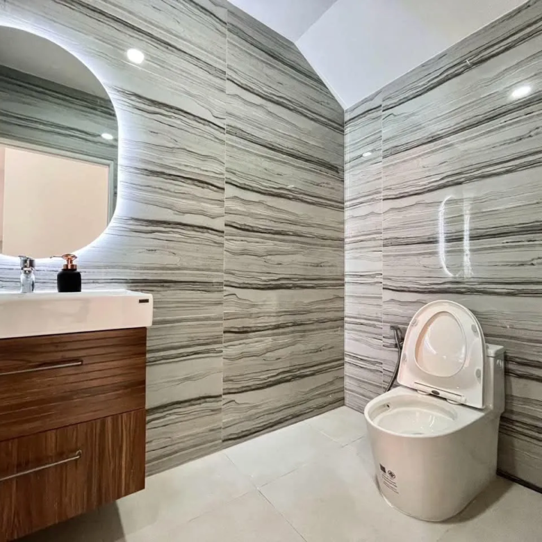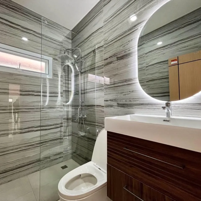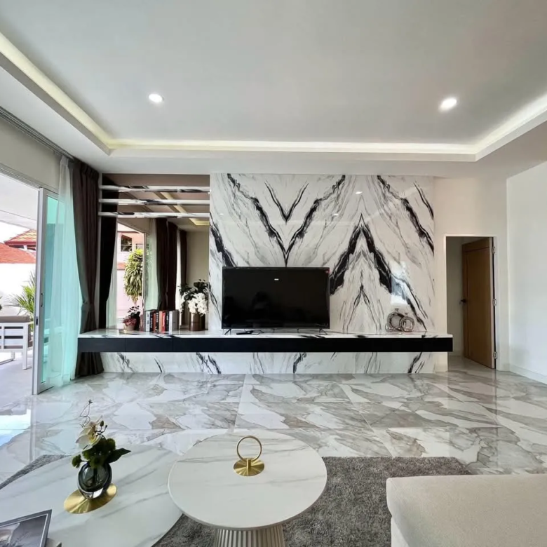 Avec une surface habitable de 344,4 m², cette villa offre 5 chambres et 5 salles de bain, garantissant un confort absolu pour toute la famille. Chaque pièce a été pensée pour offrir un espace de vie à la fois chaleureux et fonctionnel, avec une disposition idéale pour une vie de prestige sous le soleil de Pattaya.